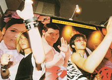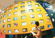 在內(nèi)資外資雙重推動(dòng)下,中國(guó)傳媒市場(chǎng)出現(xiàn)前所未有的躁動(dòng)。圖為年青人在北京電視周巨幅廣告畫(huà)面前模擬武打名星動(dòng)作。