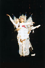 在《大紅燈籠》的海報上,有一句話叫「以濃墨重彩創(chuàng)作新中國芭蕾」。在創(chuàng)作中,張在這方面的追求確實很明確,比如芭蕾和京劇的結合,雖然它也給創(chuàng)作、特別是編舞上制造了很大的難度,從而導致《大紅燈籠》的致命缺陷──舞蹈上的缺陷。