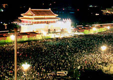 北京天安門廣場13日夜人潮涌動,數(shù)以千萬計的民眾徹夜不眠慶祝北京申奧成功。 |