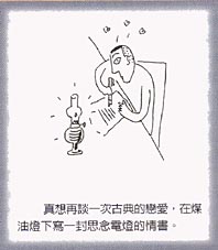 真想再談一次古典的戀愛,在煤油燈下寫一封思念電燈的情書。摘自《家庭》2000.11