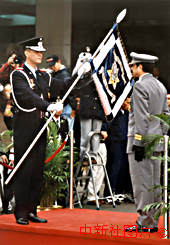 圖片說明: 澳門回歸的后過渡期,公務(wù)員本地化進(jìn)程不斷加快,圖為白英偉(左)上升警察廳長(zhǎng),結(jié)束了這一職位三百年來由葡人掌握的歷史。
