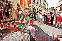 澳門三十日舉行哪吒出游,以紀(jì)念哪吒太子誕,這是中斷三十三年的哪吒出游活動(dòng)首度恢復(fù)。據(jù)主辦者介紹,此舉是為澳門回歸年祈福平安吉祥。