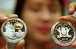 99北京國際錢幣博覽會十一日開幕,來自二十多個國家和地區(qū)的近七十家廠商展示了各自的錢幣精品。圖為"加拿大皇家造幣廠"為澳門回歸中國而發(fā)行的精鑄紀念銀幣(正反面),出售價為680元,發(fā)行38888套。