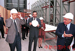 中新社傳真 毛建軍 攝 中葡聯(lián)合聯(lián)絡(luò)小組中方組長(zhǎng)韓肇康(左一)、葡方組長(zhǎng)賈安棟(左二)十一日參觀與澳門回歸有關(guān)的場(chǎng)館建設(shè)情況。據(jù)悉,雙方已對(duì)與政權(quán)交接有關(guān)的各類問(wèn)題達(dá)成共識(shí),各項(xiàng)準(zhǔn)備工作正在抓緊完成。 |