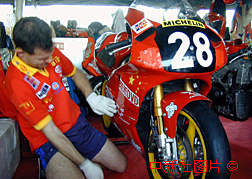 第四十六屆澳門格蘭披士大賽車即將開始,一支代表中國某集團公司出賽的摩托車隊正在進行車輛的賽前調(diào)試。
