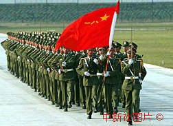 解放軍駐澳門部隊十九日首次開放給澳門特區(qū)籌委會委員、澳門地區(qū)全國人大代表、政協(xié)委員以及澳門各界代表參觀。圖為儀仗隊通過檢閱臺。