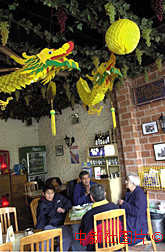 澳門小飛俠葡式餐廳,用二龍戲珠作裝飾,迎接澳門回歸和新年雙喜臨門。中新社傳真 王瑤攝