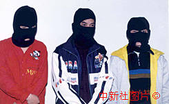 粵澳警方十二月六日再度聯(lián)手,破獲以澳門黑社會(huì)組織成員楊振林為首的跨境持槍搶劫團(tuán)伙,共抓獲該團(tuán)伙犯罪嫌疑人八名。圖為澳門警方抓獲的黑社會(huì)成員蘇銀友(左)、翁文輝(中)、陳滿松(右)。作者:莫非