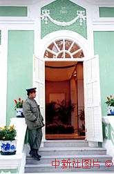 澳門保安人員在葡國建筑特色的博物館前執(zhí)勤
