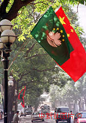 廣州市一些主要道路兩旁已掛起國旗和澳門特別行政區(qū)區(qū)旗,喜迎澳門即將回歸祖國。