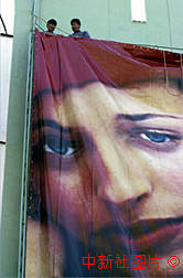 澳門回歸充滿商機(jī),一家國(guó)際時(shí)裝連鎖店在鬧市高樓上掛起巨幅人像吸引顧客。