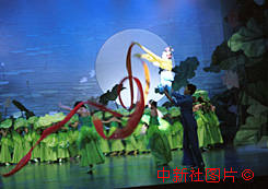 "舞影對(duì)月賀團(tuán)圓"--中國(guó)文化部主辦的慶回歸演出排演一鏡頭。 中新社傳真 陳佳攝