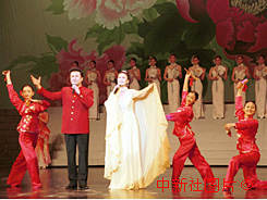 將于20晚舉行的澳門回歸慶典文藝晚會(huì)陣容鼎盛,名歌手牟玄甫和曲比阿烏在排演牡丹之歌。 中新社傳真 陳佳攝