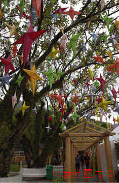 澳門(mén)氹仔島的古樹(shù)上滿掛千顆吉祥星,祝愿回歸盛典心滿意足。