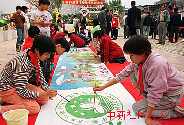 澳門(mén)特區(qū)候任行政長(zhǎng)官何厚鏵的故鄉(xiāng)廣東番禺石樓鎮(zhèn),十六日舉行全鎮(zhèn)中小學(xué)生迎澳門(mén)回歸書(shū)畫(huà)大賽,氣氛濃烈。