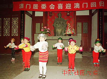 距離中國恢復對澳門行使主權僅剩三天,一群活潑可愛的小朋友十七日在位于福州市區(qū)澳門路的林則徐紀念館內(nèi)表演少兒舞蹈《花仙子迎回歸》。今年恰逢民族英雄林則徐巡視澳門一百六十周年,孩子們也用舞蹈來紀念這位歷史偉人。