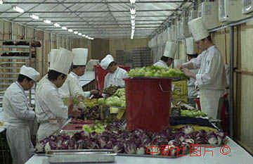 廚師十八傍晚在舉行澳葡政府告別酒會的宴會廳廚房內(nèi)為最后的晚餐精心準備菜肴。 中新社傳真 毛建軍攝