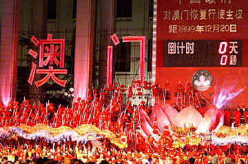 一九九九年十二月二十日零點(diǎn)零分,北京天安門廣場(chǎng)澳門回歸倒計(jì)時(shí)牌前一片歡騰。(本社記者天安門廣場(chǎng)零點(diǎn)現(xiàn)場(chǎng)數(shù)碼傳真)作者:滿會(huì)喬