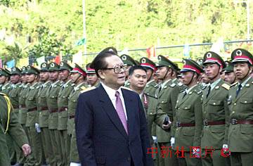 國家主席江澤民在澳門回歸之日親臨解放軍駐澳部隊營地,檢閱剛剛進駐的將士們。 中新社數(shù)碼傳真 王瑤攝