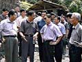 由中國國家經(jīng)貿委主任李榮融率領的中央調查組,日前前往廣西壯族自治區(qū)南丹縣,調查當?shù)氐V井重大透水事故。圖中左三戴墨鏡者為李榮融。