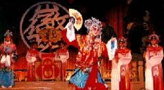 京劇的前身--徽劇 徽劇,淵源于明代的"徽池雅調(diào)"。明朝嘉靖年間,江西弋陽(yáng)腔流傳到安徽青陽(yáng),貴池一帶,與當(dāng)?shù)孛癖娤猜剺?lè)見(jiàn)的民間曲調(diào)相結(jié)合,創(chuàng)造了新腔,形成了具有當(dāng)?shù)氐胤教厣那嚓?yáng)腔;青陽(yáng)腔又受到民間山歌小調(diào)和昆曲的影響,長(zhǎng)期發(fā)展而形成今天的徽劇。 清朝乾隆年間,徽劇名藝人高朗亭,郝天壽等,把徽劇帶到揚(yáng)州演出。當(dāng)時(shí)揚(yáng)州是全國(guó)文化中心之一,是"花部"的集中地,但很快即被藝術(shù)精湛的徽劇壓倒。乾隆五十五年,高朗亭又帶到了北京,受到了北京觀眾的歡迎。接著,又引起"四喜","春臺(tái)","和春"等徽班進(jìn)京。 徽劇進(jìn)京不久,漢劇也進(jìn)京,徽劇又從漢劇中吸收了西皮,進(jìn)一步豐富,發(fā)展了自己的聲腔。從此,徽劇不僅闖進(jìn)了皇宮,振動(dòng)了京城,而且廣泛流傳,影響了全國(guó).它在北方扎下根子,逐漸吸收了北方的京腔,其高腔與北方語(yǔ)言結(jié)合起來(lái),發(fā)展成為京劇。它在南方的戲曲影響也十分深遠(yuǎn),江西的贛劇、四川的川劇、廣東的粵劇、廣西的桂劇、云南的滇劇,都受到徽劇不同程度的影響。 對(duì)徽劇表演藝術(shù)有著突出貢獻(xiàn)的杰出代表是老藝人程長(zhǎng)庚。程長(zhǎng)庚名椿,字玉珊,安徽潛山人。他把徽音、京音、楚音兼收并用,脫俗創(chuàng)新,卓然成家,對(duì)徽劇來(lái)說(shuō),他起了承前作用,對(duì)京戲來(lái)說(shuō),他起了起后作用,因此,他成為京劇的開(kāi)山祖師。 徽劇的表演藝術(shù),豐富而多采。它講究平臺(tái)與高臺(tái)武功,講究身段、亮相的雕塑美,講究人物形象的塑造和畫面氣派等。平臺(tái)與高臺(tái)武功在徽劇里最為突出,平臺(tái)如"獨(dú)腳單踢"、"叉腿單踢"、"刀門"、"飛叉"等都異常驚險(xiǎn),至于高臺(tái)武工,更為險(xiǎn)要,一般演員要翻三張桌子,有的要翻七張桌子。身段、亮相,在徽戲里很有雕塑藝術(shù)感;談∽⒅丶w表演,必要時(shí)眾歌齊舞,顯得氣勢(shì)壯偉,場(chǎng)面熱烈;談〉膭∧亢芏,據(jù)記載有一千四百零四個(gè),因年代較久,多為手抄本,不少的本子以失傳。解放后,經(jīng)過(guò)挖掘整理,富有徽劇特色的代表劇目有:《義虎報(bào)》、《巧姻緣》、《齊王點(diǎn)馬》、《水淹七軍》等。