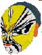 "花臉"和"碎臉"外形相似,凡是腦門和臉頰顏色相同,是碎臉;顏色不一,是花臉!侗I御馬》的竇爾墩、《將相和》的廉頗、《戰(zhàn)宛城》的典韋、《除三害》的周處,勾的是都是"花三塊兒"。